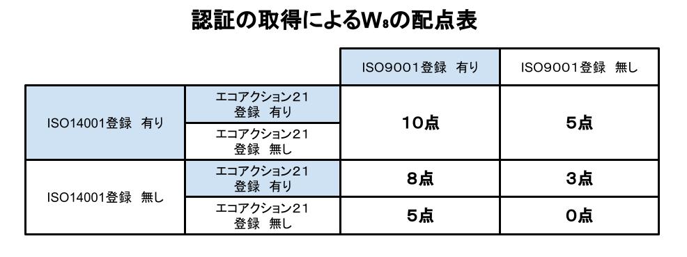 評点は、改正前からの加点対象である「ISO14001」の5点に対し、「エコアクション21」は3点に設定されました。